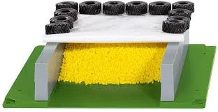 Deze set is compleet met afdekzeil, autobanden en mais-granulaat