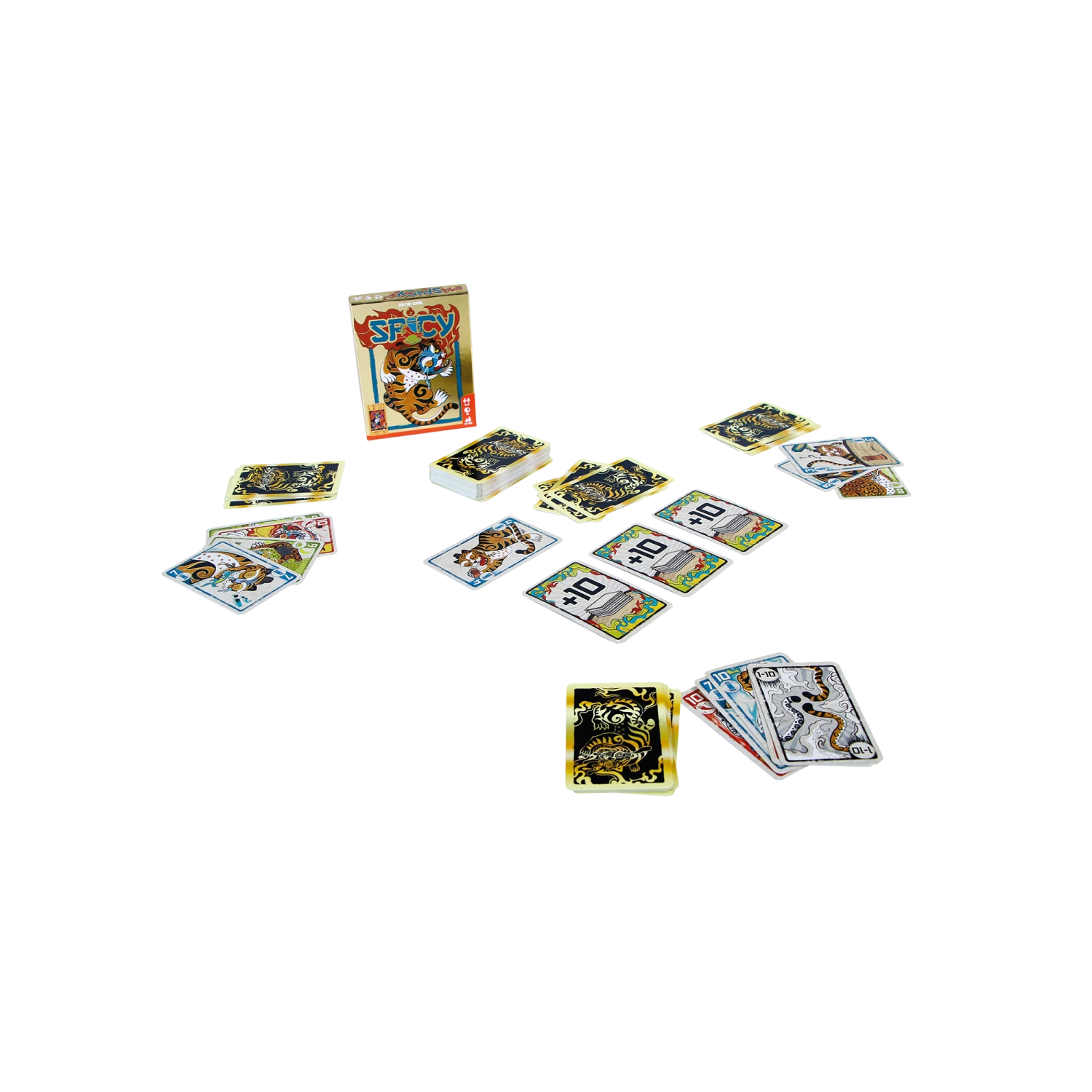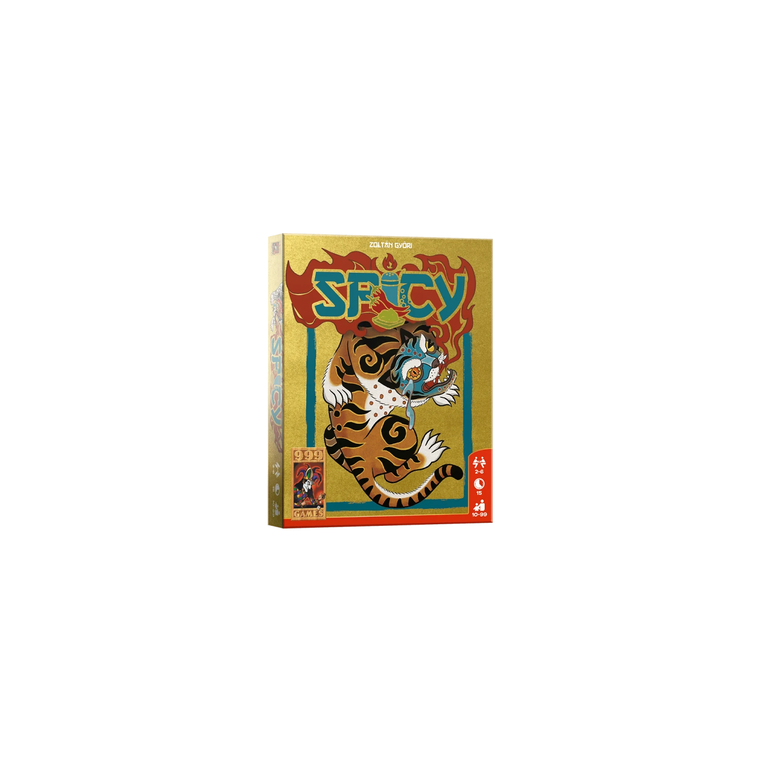 Drie grote katten die niet meer wilden vechten om wie de baas is, spraken af om het gevecht te staken en hun negen levens op te fleuren met een wedstrijd met hete kruiden. Helaas speelde iedereen al snel vals, dus vonden de katten een erg heet, vaak betraand blufspel uit! Het maakt niet uit hoe sterk, oud of stoer je bent, Spicy is een pittig en snel blufkaartspel voor het hele gezin.