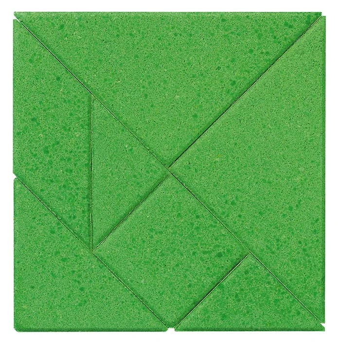 Puzzel met 7stenen puzelstukjes waarmee een vierkant gevormd kan worden.