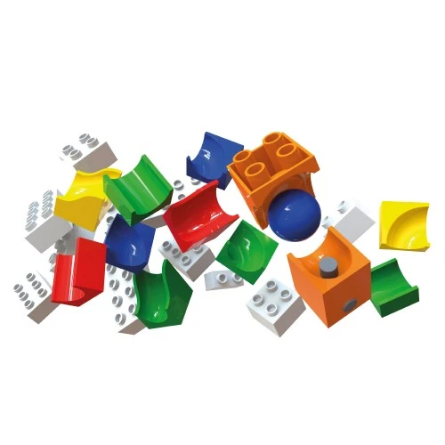Wil je ongekende hoogten bereiken? Durf je de knop in te drukken om de knikker minstens zeven bouwlagen omhoog te schieten? Bereid je dan voor op de nieuwe Katapult-set van Hubelino! Het is de enige knikkerbaankatapult waarmee je de knikker met een druk op de knop lanceert. De set bestaat uit 41 onderdelen, inclusief de katapultsteen en de reflector waarmee je de knikker in de gewenste richting kunt sturen. Ga de uitdagingen van de zwaartekracht aan, experimenteer met de snelheid en leer hoe je je knikkerbaan steeds beter kunt maken, voor de uiteindelijke, ultieme spelbeleving. Met deze set kun je al een complete kleine baan bouwen. Nog leuker wordt het als je de katapult inbouwt in een grotere knikkerbaan en bijvoorbeeld combineert met de 45-delige mini-set.