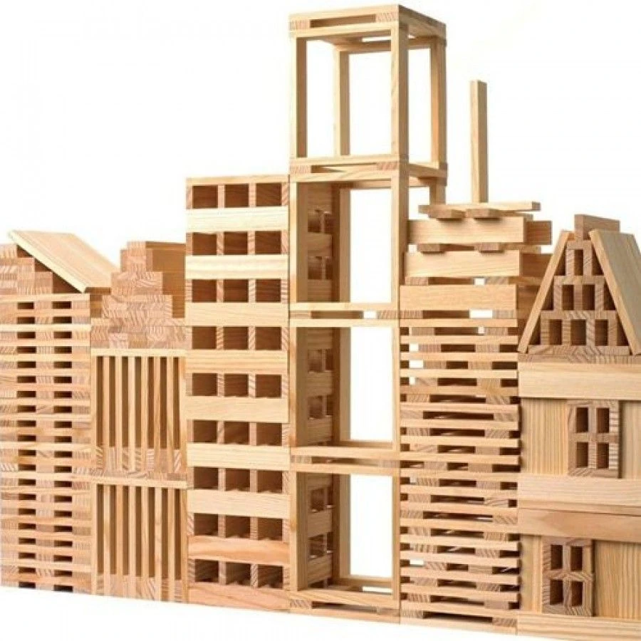 Binnenin deze prachtige gezeefdrukte houten kist vind je 1000 KAPLA planken in Landes grenen en twee inleidende boekjes.