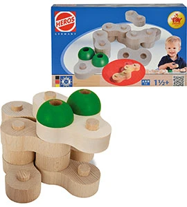 De Ketting bouwstenen van HEROS zijn een geheel nieuw type constructiespeelgoed voor kinderen vanaf 1,5 jaar. Onderscheiden met de Toy Award 2014. Gemaakt uit beukenhout en uitermate geschikt voor kleine kinderhanden. De speciale verbindingsconstructie maakt het peuters mogelijk mooie bouwwerken te maken welke ook nog bewogen kunnen worden. Deze set bestaat uit 11 delen.