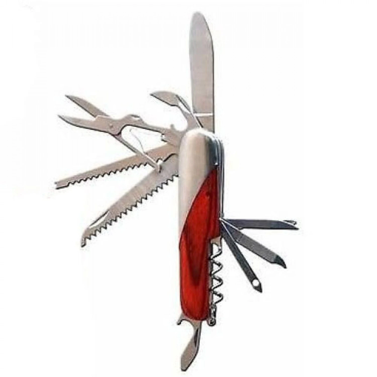 Het zakmes heeft diverse functies en heeft een houten handvat wat fijn in de hand ligt..