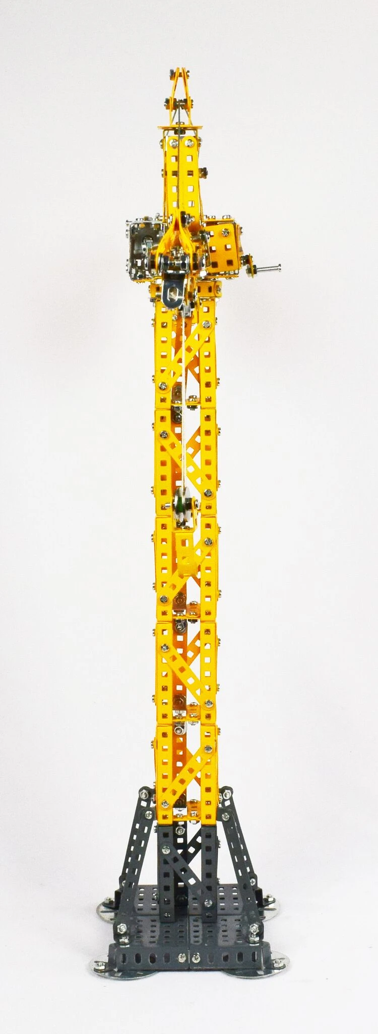 Het model is detailgetrouw nagebouwd en voorzien van de Liebherr; alle delen worden onderling verbonden middels schroeven en moeren.